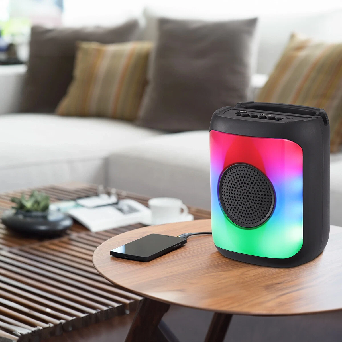 Cylinder Speaker Multi Colored Lights Premium Sound